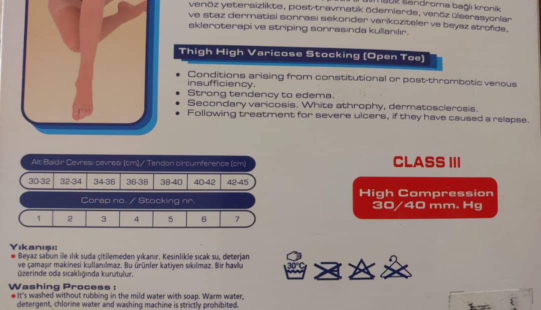 جوراب واریس بالای ران - فشار بالای زانو - انگشت باز - نوار سیلیکونی بالای جوراب فشار بالای 30/40 میلی متر جیوه
