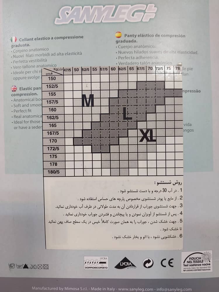 جوراب شلواری واریس کلاس 1 سایز بزرگ سانی لگ ایتالیایی رنگ مشکی