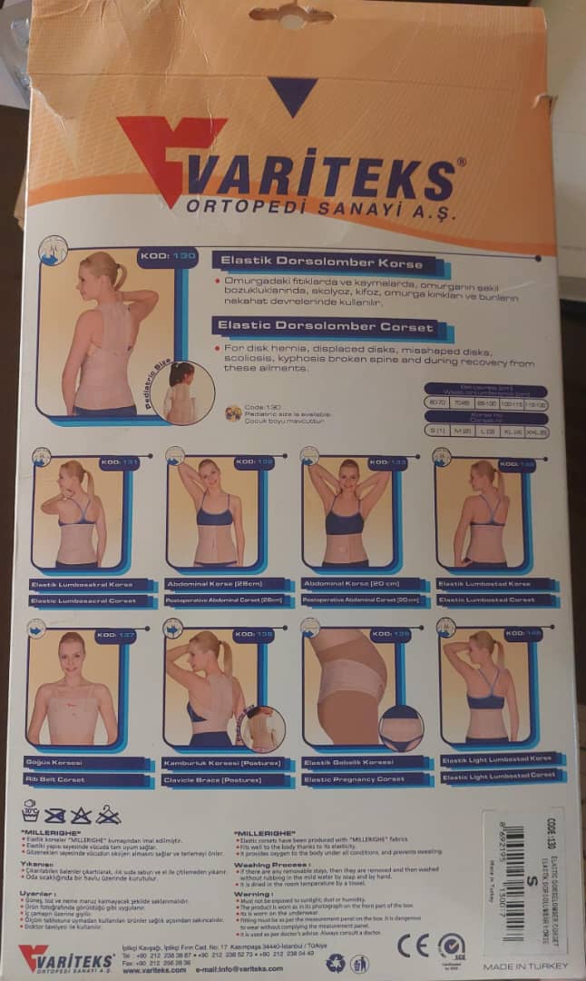 کرست TLSO دورسولومبوساکرال الاستیک سبک واریتکس VARITEKS ترکیه