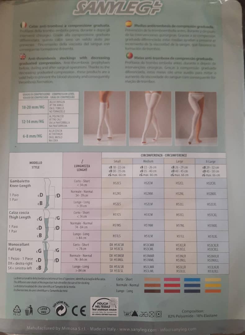 جوراب آنتی آمبولی بالای زانو سایز کوچک -طول بلند سانی لگ SANYLEG ایتالیا